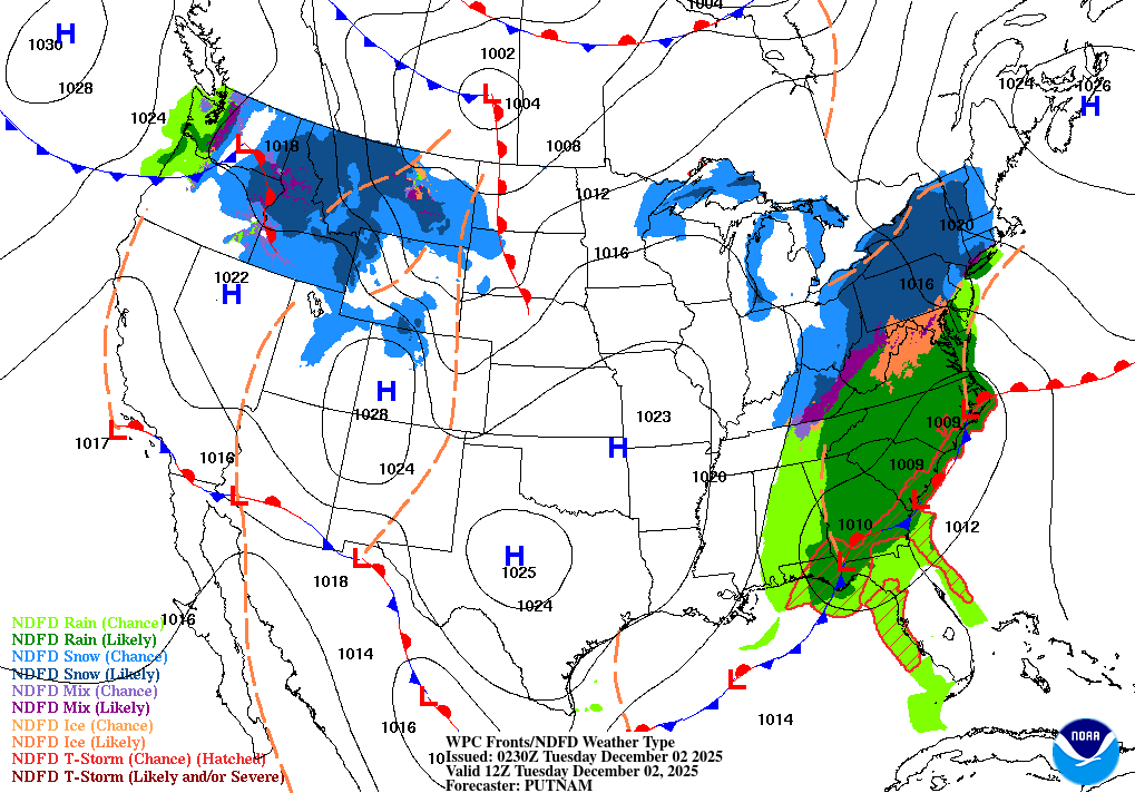 Rain before 4pm. Cloudy, with a high near 44. Northeast wind 3 to 9 mph. Chance of precipitation is 100%. New rainfall amounts between three quarters and one inch possible.