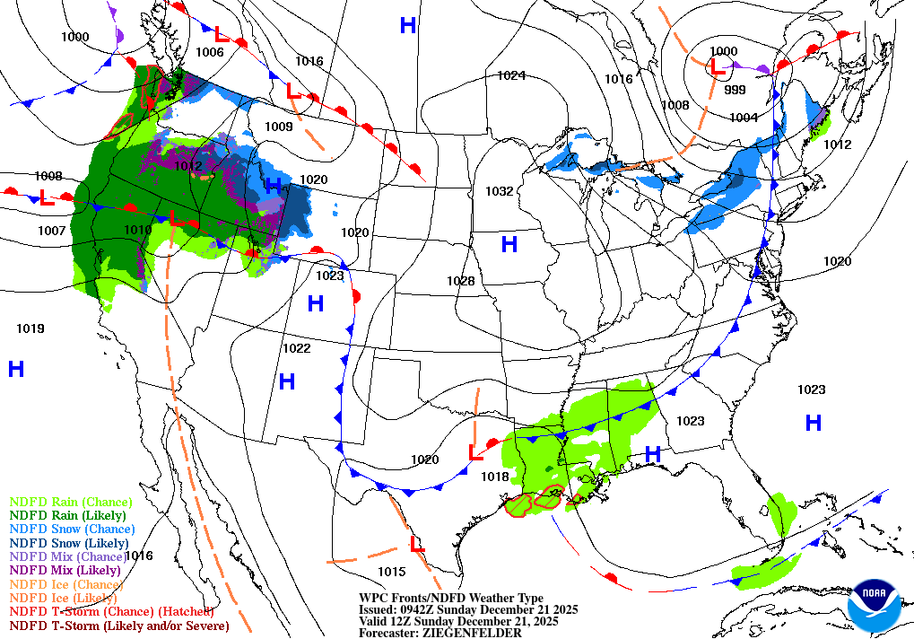 A chance of snow. Mostly cloudy, with a low around 21. West wind around 7 mph.