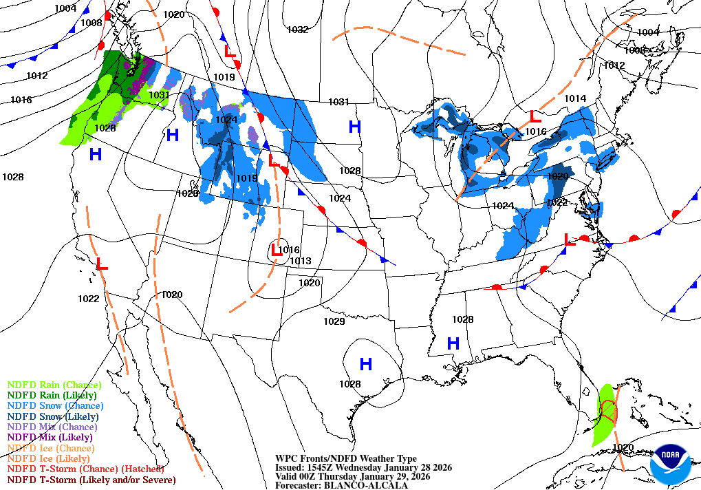 A chance of snow after 8pm. Mostly cloudy, with a low around 16. North wind 5 to 14 mph, with gusts as high as 29 mph. Chance of precipitation is 40%.