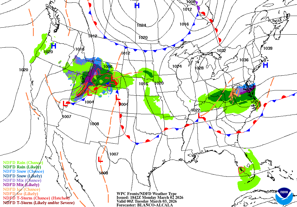 Rain showers likely before 8am, then rain showers and patchy fog. Cloudy, with a high near 49. South wind 3 to 9 mph. Chance of precipitation is 100%. New rainfall amounts between a half and three quarters of an inch possible.