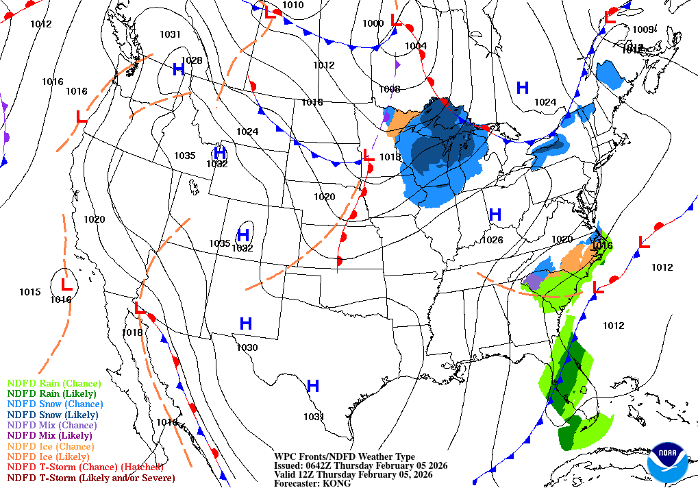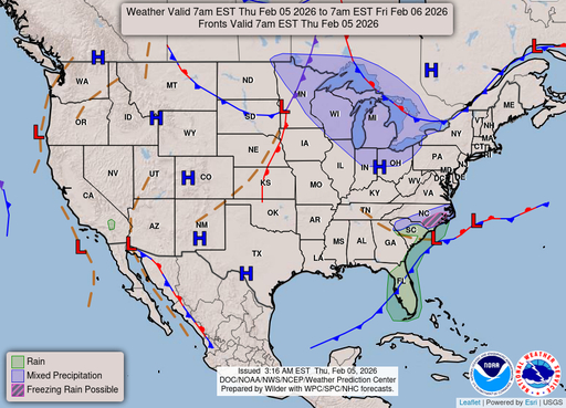 Atlantic coastal waters from Flagler Beach to Jupiter Inlet out 60 nm. Seas are provided as a range of the average height of the highest one third of the waves, along with the occasional height of the average highest ten percent of the waves. GULF STREAM HAZARDS.West winds 15 to 20 knots increasing to 20 to 25 knots this afternoon. Seas 3 to 5 feet. The approximate location of the west wall of the Gulf Stream based on the Real Time Ocean Forecast System as of Thursday, February 5th, 2026. 43 nautical miles east of Ponce Inlet. 30 nautical miles east of Port Canaveral. 22 nautical miles east of Sebastian Inlet. 14 nautical miles east of Fort Pierce Inlet. 9 nautical miles east of Saint Lucie Inlet.