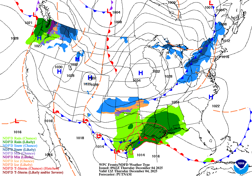 Mostly cloudy. High near 35, with temperatures falling to around 31 in the afternoon. North northeast wind around 7 mph.