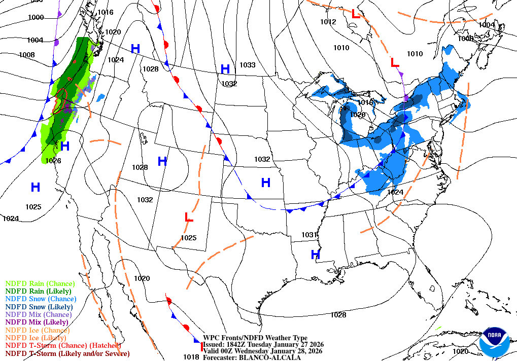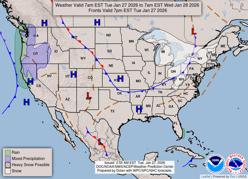 Atlantic coastal waters from Jupiter Inlet to Ocean Reef out to 60 nm and Gulf coastal waters from East Cape Sable to Chokoloskee out 20 nm and Chokoloskee to Bonita Beach out 60 nm.including the waters of Biscayne Bay and Lake Okeechobee. Seas are provided as a range of the average height of the highest 1/3 of the waves.along with the occasional height of the average highest 10 percent of the waves. A cold front has passed through South Florida leading to the development of gusty northwesterly flow across local waters. Wind gusts between 30-40 knots remain possible through this afternoon with wave heights peaking between 7-9 feet in the Gulf and 10-12 feet in the Atlantic. A Gale Warning is in effect for all local waters through this morning, after which a Small Craft Advisory will remain in effect through the remainder of the evening. Gulf Stream Hazards: Sustained winds increasing to 25-30 knots this gusts up into Gale force. Waves will quickly build to 10-12 feet during the early morning hours of Tuesday. The approximate location of the west wall of the Gulf Stream as of Jan 27, 2026. 1 nautical miles north northeast of Fowey Rocks. 10 nautical miles northeast of Port Everglades. 3 nautical miles east northeast of Lake Worth. 6 nautical miles east northeast of Jupiter Inlet. This data courtesy of the Naval Oceanographic Office.