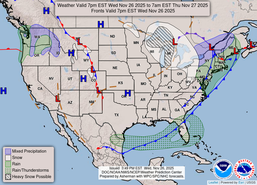 Atlantic coastal waters from Jupiter Inlet to Ocean Reef out to 60 nm and Gulf coastal waters from East Cape Sable to Chokoloskee out 20 nm and Chokoloskee to Bonita Beach out 60 nm.including the waters of Biscayne Bay and Lake Okeechobee. Seas are provided as a range of the average height of the highest 1/3 of the waves.along with the occasional height of the average highest 10 percent of the waves. Cold front crosses the area waters later today and then a prolonged period of hazardous winds and seas are expected through at least Saturday. Northerly winds 20-25 kts expected behind the cold front with seas building to 4-8 ft in the Gulf and 6-10 ft in the Atlantic. Lake and bay waters will be rough. Gulf Stream Hazards: 20-25 kt northerly winds beginning late tonight. Seas increasing to 6-10 ft by Friday morning. The approximate location of the west wall of the Gulf Stream as of Nov 27, 2025. 22 nautical miles north northeast of Fowey Rocks. 7 nautical miles east of Port Everglades. 9 nautical miles east of Lake Worth. 11 nautical miles east northeast of Jupiter Inlet. This data courtesy of the Naval Oceanographic Office.