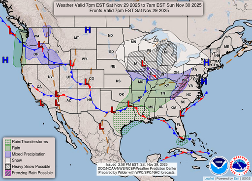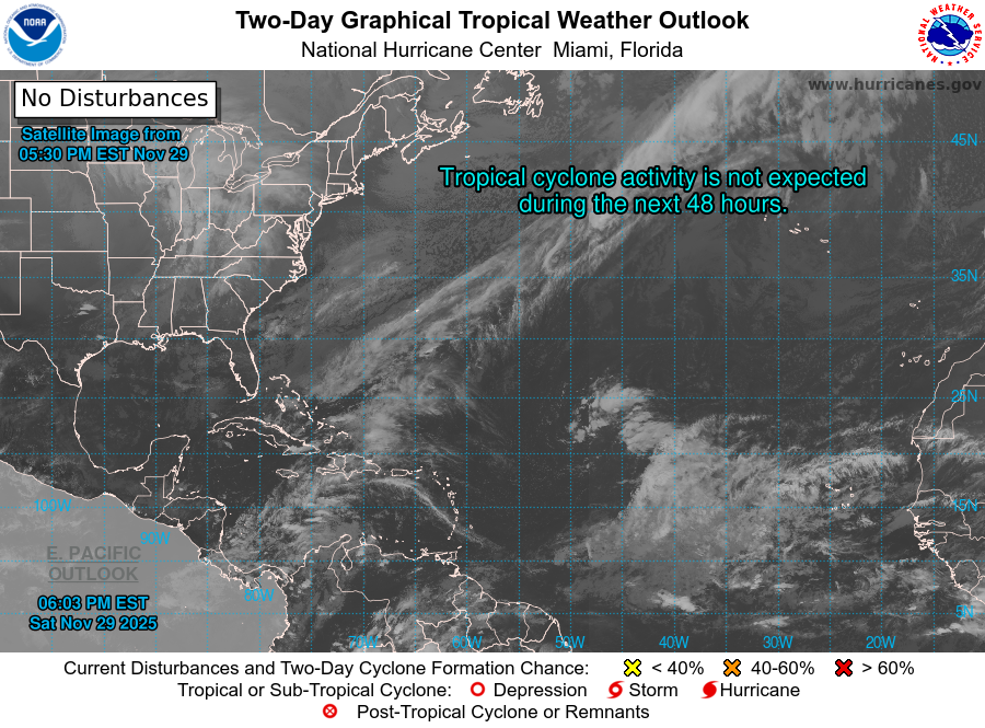 Atlantic coastal waters from Jupiter Inlet to Ocean Reef out to 60 nm and Gulf coastal waters from East Cape Sable to Chokoloskee out 20 nm and Chokoloskee to Bonita Beach out 60 nm.including the waters of Biscayne Bay and Lake Okeechobee. Seas are provided as a range of the average height of the highest 1/3 of the waves.along with the occasional height of the average highest 10 percent of the waves. Hazardous winds and seas will continue through late Saturday night for the Gulf waters and early Sunday for the Atlantic waters. Northeast winds 20-25 kts today subsiding to cautionary easterly winds on Sunday. Seas 3-6 ft in the Gulf today and 6-10 ft in the Atlantic. Gulf Stream Hazards: 20-25 kt northeasterly winds today. Seas 6-10 ft through late Saturday night. The approximate location of the west wall of the Gulf Stream as of Nov 29, 2025. 8 nautical miles north northeast of Fowey Rocks. 7 nautical miles east of Port Everglades. 3 nautical miles east northeast of Lake Worth. 6 nautical miles east northeast of Jupiter Inlet. This data courtesy of the Naval Oceanographic Office.