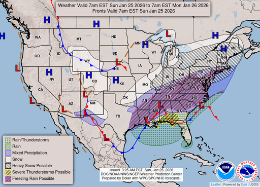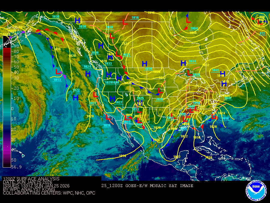 Atlantic coastal waters from Jupiter Inlet to Ocean Reef out to 60 nm and Gulf coastal waters from East Cape Sable to Chokoloskee out 20 nm and Chokoloskee to Bonita Beach out 60 nm.including the waters of Biscayne Bay and Lake Okeechobee. Seas are provided as a range of the average height of the highest 1/3 of the waves.along with the occasional height of the average highest 10 percent of the waves. Surface winds will veer to a southerly direction across the local waters today becoming breezy during the afternoon hours. The arrival of a strong cold front and line of quick moving showers during the day on Monday will result in a shift of surface winds to a northwesterly direction and a deterioration of marine conditions across all waters as winds increase and wave heights build. A prolonged period of hazardous marine conditions, especially in the Atlantic and Gulf waters is possible this week as a pressure gradient and reinforcing cold fronts keep winds elevated. Gulf Stream Hazards: None. The approximate location of the west wall of the Gulf Stream as of Jan 24, 2026. 1 nautical miles north northeast of Fowey Rocks. 7 nautical miles south southeast of Port Everglades. 6 nautical miles south southeast of Lake Worth. 6 nautical miles east northeast of Jupiter Inlet. This data courtesy of the Naval Oceanographic Office.