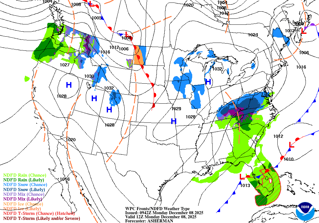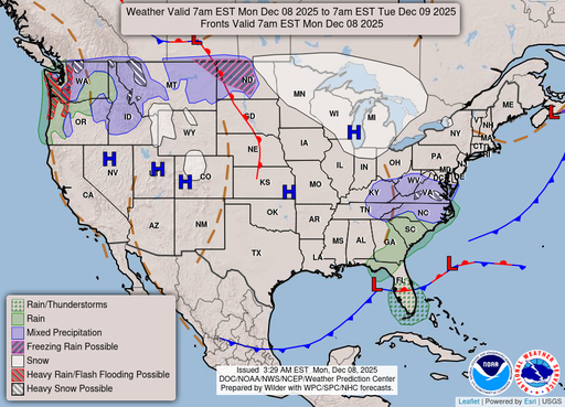 Atlantic Coastal Waters from Altamaha Sound GA to Flagler Beach FL out to 60 nm. Seas are provided as a range of the average height of the highest 1/3 of the waves, along with the occasional height of the average highest 1/10 of the waves. As an area of low pressure shifts offshore of the southeast U.S. coast early this morning, north to northwest winds will strengthen reaching small craft advisory levels by Monday afternoon and continuing into Tuesday morning. Weak high pressure will then build over the area Tuesday afternoon into Wednesday then shift southeast by Wednesday night the next cold front approaches. The weak cold front is forecast to move through on Thursday. .GULF STREAM. The approximate location of the west wall of the Gulf Stream as of Dec 06, 2025 at 1200 UTC. 71 nautical miles east of Flagler Beach. 74 nautical miles east of Saint Augustine Beach. 85 nautical miles east southeast of Jacksonville Beach. 97 nautical miles east southeast of St Simons Island. This data courtesy of the Naval Oceanographic Office.