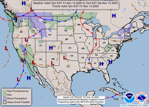 Atlantic Coastal Waters from Altamaha Sound GA to Flagler Beach FL out to 60 nm. Seas are provided as a range of the average height of the highest 1/3 of the waves, along with the occasional height of the average highest 1/10 of the waves. High pressure will build into the region through Saturday. On Sunday the high pressure will shift southward which will allow for breezy south to southwest winds to develop over the local waters ahead of the next dry frontal passage that is expected on Sunday night or early Monday morning. High pressure will re-build into the region for most of next week. GULF STREAM. The approximate location of the west wall of the Gulf Stream as of Nov 13, 2025 at 1200 UTC. 50 nautical miles east northeast of Flagler Beach. 41 nautical miles east northeast of Saint Augustine Beach. 52 nautical miles east southeast of Jacksonville Beach. 87 nautical miles east southeast of St Simons Island. This data courtesy of the Naval Oceanographic Office.