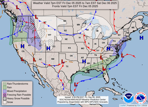 Atlantic Coastal Waters from Altamaha Sound GA to Flagler Beach FL out to 60 nm. Seas are provided as a range of the average height of the highest 1/3 of the waves, along with the occasional height of the average highest 1/10 of the waves. A frontal boundary will stall south of the forecast waters today and into tonight. A wave of low pressure will then develop along this front just south of the northeast Florida waters late tonight with widespread rainfall and a isolated embedded thunderstorms early Sunday into Sunday night over the Florida waters. Low pressure will move offshore on Sunday night, resulting in strengthening northwest winds. High pressure will then build over the southeast states early next week, creating strengthening northerly winds and Small Craft Advisory conditions from Monday through Tuesday evening. .GULF STREAM. The approximate location of the west wall of the Gulf Stream as of Dec 04, 2025 at 1200 UTC. 66 nautical miles east northeast of Flagler Beach. 73 nautical miles east of Saint Augustine Beach. 85 nautical miles east southeast of Jacksonville Beach. 94 nautical miles east of St Simons Island. This data courtesy of the Naval Oceanographic Office.