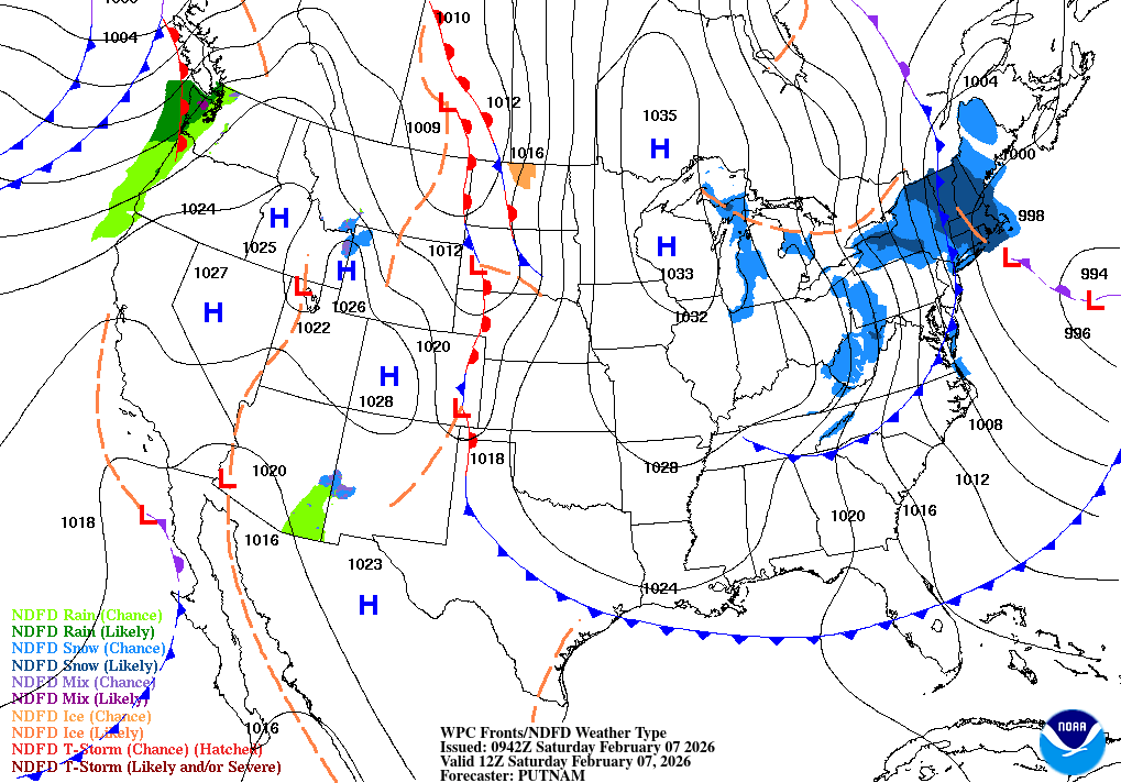 Atlantic Coastal Waters from Altamaha Sound GA to Flagler Beach FL out to 60 nm. Seas are provided as a range of the average height of the highest 1/3 of the waves, along with the occasional height of the average highest 1/10 of the waves. A dry cold front will move south of the local waters early this morning with small craft advisory conditions over the local waters through this afternoon. Gusts to gale force will continue to impact the outer waters through early Saturday morning. High pressure builds north of the local waters tonight, then northeast of the region into Monday as winds and seas subside. The high builds across south Florida through mid-week. .GULF STREAM. The approximate location of the west wall of the Gulf Stream as of Feb 06, 2026 at 0000 UTC. 54 nautical miles east of Flagler Beach. 58 nautical miles east of Saint Augustine Beach. 70 nautical miles east southeast of Jacksonville Beach. 71 nautical miles east southeast of St Simons Island. This data derived from NCEP Global RTOFS model.