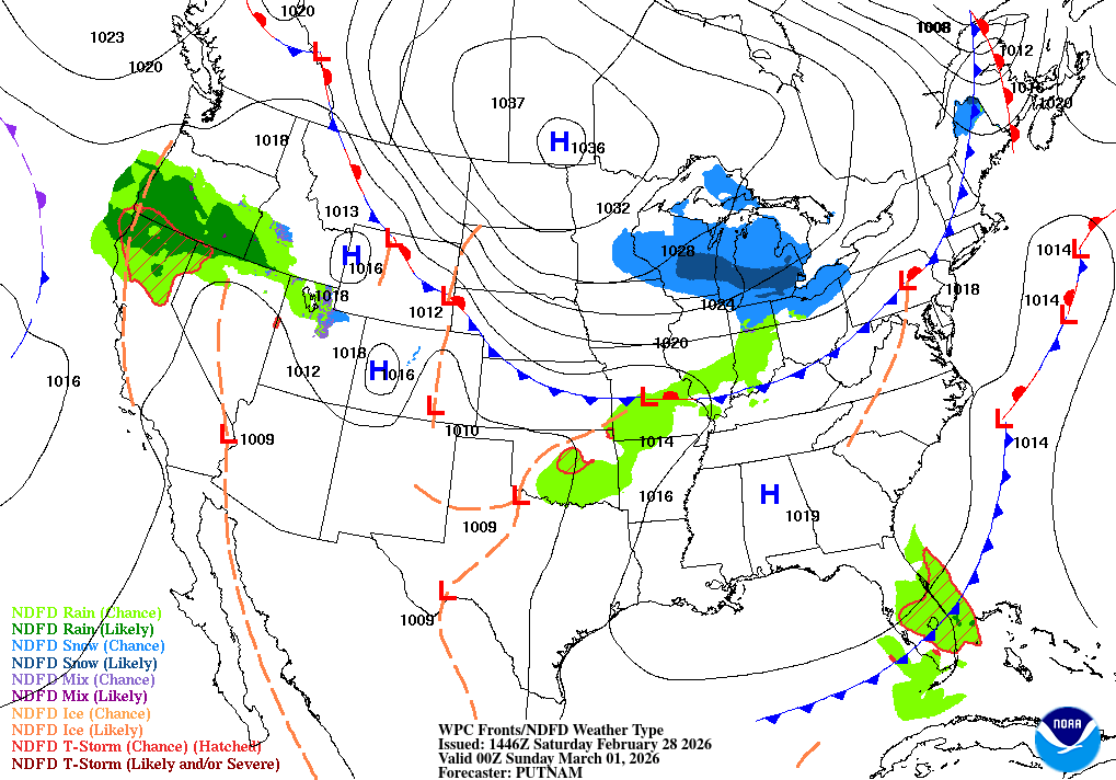Atlantic Coastal Waters from Altamaha Sound GA to Flagler Beach FL out to 60 nm. Seas are provided as a range of the average height of the highest 1/3 of the waves, along with the occasional height of the average highest 1/10 of the waves. A cold front over the waters will move south of the area by Saturday morning. Areas of fog will likely develop for portions of the waters tonight through Saturday morning with low visibility leading to hazy or locally foggy conditions at times. North to northeast winds will then increase midday Saturday, reaching Exercise Caution Levels. High pressure will lead to a light onshore flow Sunday before a possible strong surge of northeast winds reaches the waters with a back door cold front on Monday. Winds and seas may reach small craft advisory levels Monday night into Tuesday. Winds will turn more onshore through the middle of next week with coastal troughs developing bouts of showers over the waters. .GULF STREAM. The approximate location of the west wall of the Gulf Stream as of Feb 27, 2026 at 0000 UTC. 50 nautical miles east of Flagler Beach. 53 nautical miles east of Saint Augustine Beach. 64 nautical miles east southeast of Jacksonville Beach. 80 nautical miles east southeast of St Simons Island. This data derived from NCEP Global RTOFS model.