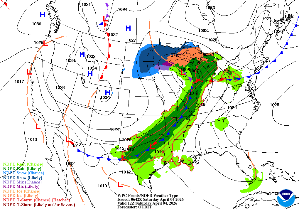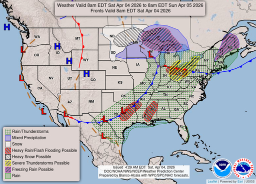 Atlantic Coastal Waters from Altamaha Sound GA to Flagler Beach FL out to 60 nm. Seas are provided as a range of the average height of the highest 1/3 of the waves, along with the occasional height of the average highest 1/10 of the waves. Ahead of an approaching cool front, onshore winds will veer southerly across the waters tonight through Sunday. The slowing front will gradually move north to south through the waters Sunday night bringing showers and isolated thunderstorms as the front stalls through Monday. In the wake of the front, high pressure will build to the north resulting in strengthening northeasterly winds Monday night and the onset of a multi-day period of strong onshore winds throughout next week, likely requiring an extended Small Craft Advisory. Much stronger high pressure will wedge along the coast Wednesday resulting in further strengthening and potential for gales and seas building potentially up to 15 feet across the waters. As high pressure breaks away from the eastern seaboard late in the week, onshore winds will begin to relax. .GULF STREAM. The approximate location of the west wall of the Gulf Stream as of Apr 04, 2026 at 0000 UTC. 54 nautical miles east of Flagler Beach. 58 nautical miles east of Saint Augustine Beach. 70 nautical miles east southeast of Jacksonville Beach. 68 nautical miles east southeast of St Simons Island. This data derived from NCEP Global RTOFS model.