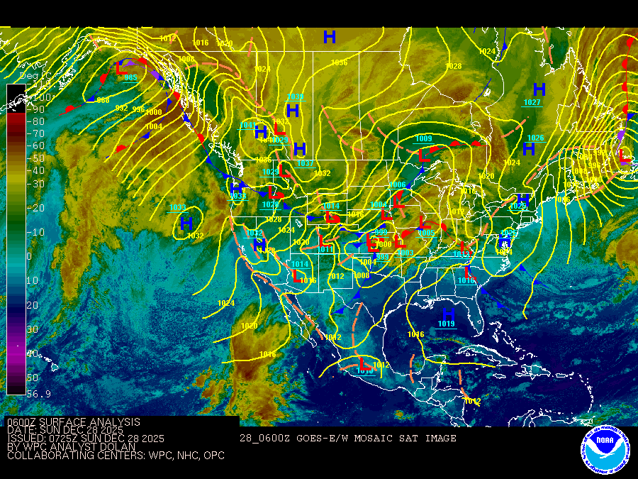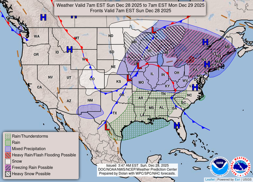 Atlantic Coastal Waters from Altamaha Sound GA to Flagler Beach FL out to 60 nm. Seas are provided as a range of the average height of the highest 1/3 of the waves, along with the occasional height of the average highest 1/10 of the waves. High pressure will remain centered over the Florida peninsula today. High pressure will then weaken and slide southward later tonight ahead of a strong cold front. West-southwest winds increase to Caution levels on Monday ahead of the approaching cold front. Winds shift to northwest and strengthen to Small Craft Advisory levels Monday night into Tuesday in the wake of the frontal passage. West northwest winds continue for much of next week as high pressure builds eastward along the northern Gulf coast. .GULF STREAM. The approximate location of the west wall of the Gulf Stream as of Dec 28, 2025 at 0000 UTC. 50 nautical miles east of Flagler Beach. 53 nautical miles east of Saint Augustine Beach. 64 nautical miles east southeast of Jacksonville Beach. 71 nautical miles east southeast of St Simons Island. This data derived from NCEP Global RTOFS model.