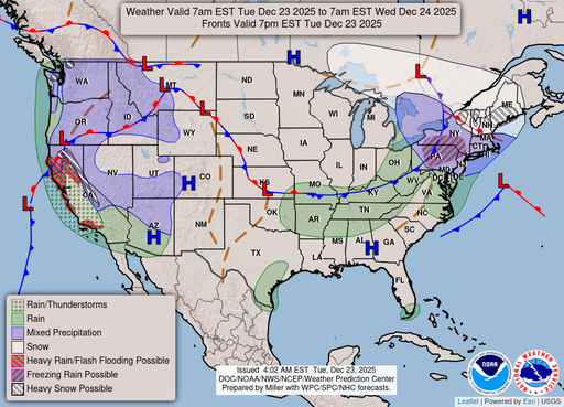 Atlantic coastal waters from Flagler Beach to Jupiter Inlet out 60 nm. Seas are provided as a range of the average height of the highest one third of the waves, along with the occasional height of the average highest ten percent of the waves. GULF STREAM HAZARDS.East winds 15 to 20 knots, south of the Cape through early this afternoon, diminishing to 10 to 15 knots. Seas 6 to 8 feet. The approximate location of the west wall of the Gulf Stream based on the Real Time Ocean Forecast System as of Tuesday, December 23rd, 2025. 43 nautical miles east of Ponce Inlet. 31 nautical miles east of Port Canaveral. 26 nautical miles east of Sebastian Inlet. 17 nautical miles east of Fort Pierce Inlet. 11 nautical miles east of Saint Lucie Inlet.