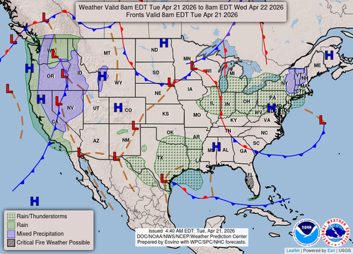 Chance Showers And ThunderstormsWinds: 15 mph NE