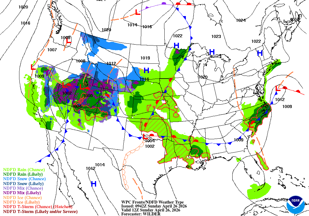 Chance Rain ShowersWinds: 12 mph E