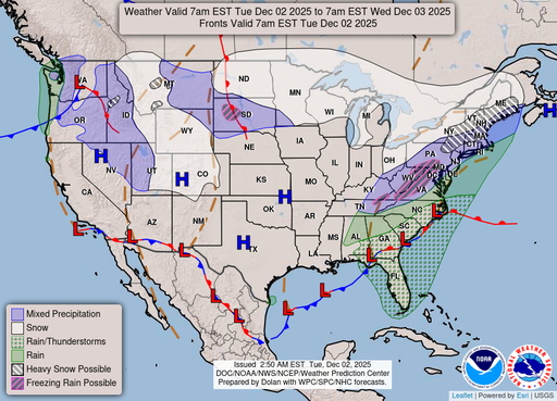 Tidal Potomac River and Maryland portion of Chesapeake Bay. Forecasts of wave heights do not include effects of wind direction relative to tidal currents. Expect higher waves when winds are blowing against the tidal flow. Waves flat where waters are iced over. The next storm system will move across the region this morning bringing a wintry mix to much of the region. Another disturbance may move through the region later in the week. Small Craft Advisories will likely be needed through the middle of the week, with gales late Tuesday afternoon through Tuesday night.