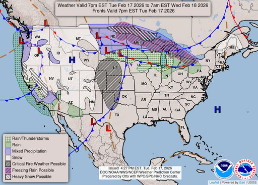 Rain. Cloudy, with a low around 43. East wind 7 to 10 mph. Chance of precipitation is 100%. New rainfall amounts between a half and three quarters of an inch possible.