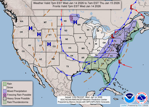 Atlantic coastal waters from Flagler Beach to Jupiter Inlet out 60 nm. Seas are provided as a range of the average height of the highest one third of the waves, along with the occasional height of the average highest ten percent of the waves. GULF STREAM HAZARDS.West winds 15 to 20 knots. The approximate location of the west wall of the Gulf Stream based on the Real Time Ocean Forecast System as of Wednesday, January 14th, 2026. 43 nautical miles east of Ponce Inlet. 31 nautical miles east of Port Canaveral. 26 nautical miles east of Sebastian Inlet. 19 nautical miles east of Fort Pierce Inlet. 12 nautical miles east of Saint Lucie Inlet.
