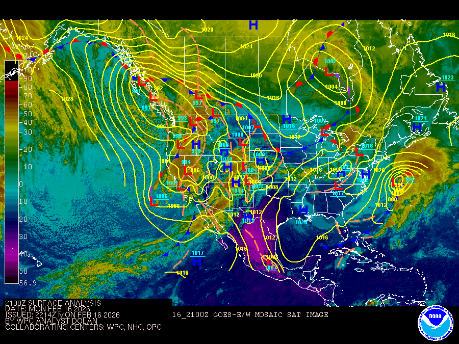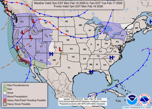 Atlantic coastal waters from Flagler Beach to Jupiter Inlet out 60 nm. Seas are provided as a range of the average height of the highest one third of the waves, along with the occasional height of the average highest ten percent of the waves. GULF STREAM HAZARDS.Winds turning north 15 to 25 knots. Seas 4 to 6 feet briefly subsiding today, increasing to 5 to 7 feet tonight. The approximate location of the west wall of the Gulf Stream based on the Real Time Ocean Forecast System as of Monday, February 16th, 2026. 46 nautical miles east of Ponce Inlet. 32 nautical miles east of Port Canaveral. 24 nautical miles east of Sebastian Inlet. 17 nautical miles east of Fort Pierce Inlet. 9 nautical miles east of Saint Lucie Inlet.