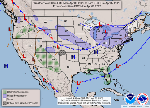 Atlantic coastal waters from Flagler Beach to Jupiter Inlet out 60 nm. Seas are provided as a range of the average height of the highest one third of the waves, along with the occasional height of the average highest ten percent of the waves. GULF STREAM HAZARDS.Northeast winds near 20 knots north of the Cape, with seas building tonight 5 to 8 feet north of Sebastian Inlet. The approximate location of the west wall of the Gulf Stream based on the Real Time Ocean Forecast System as of Monday, April 6th, 2026. 43 nautical miles east of Ponce Inlet. 31 nautical miles east of Port Canaveral. 24 nautical miles east of Sebastian Inlet. 16 nautical miles east of Fort Pierce Inlet. 9 nautical miles east of Saint Lucie Inlet.