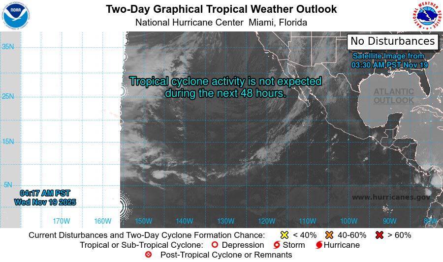 Atlantic Coastal Waters from Altamaha Sound GA to Flagler Beach FL out to 60 nm. Seas are provided as a range of the average height of the highest 1/3 of the waves, along with the occasional height of the average highest 1/10 of the waves. High pressure will be the dominant weather feature through the end of the week resulting in light winds and low seas across the local waters. Over the weekend, winds turn offshore and become breezy as a cold front approaches and passes Sunday night. High pressure building in behind the front will move offshore to the northeast early next week setting up onshore flow and development of a coastal trough. .GULF STREAM. The approximate location of the west wall of the Gulf Stream as of Nov 18, 2025 at 1200 UTC. 50 nautical miles east of Flagler Beach. 59 nautical miles east of Saint Augustine Beach. 76 nautical miles east of Jacksonville Beach. 85 nautical miles east of St Simons Island. This data courtesy of the Naval Oceanographic Office.