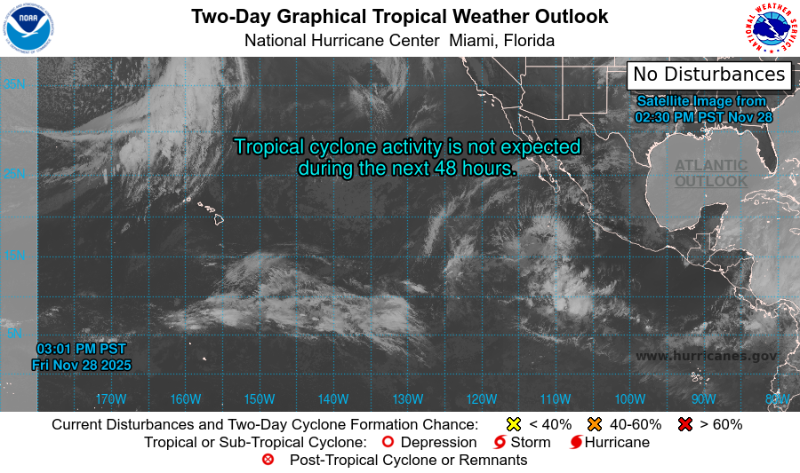 Atlantic Coastal Waters from Altamaha Sound GA to Flagler Beach FL out to 60 nm. Seas are provided as a range of the average height of the highest 1/3 of the waves, along with the occasional height of the average highest 1/10 of the waves. High pressure to the northwest Today, will become centered to the north Tonight, then northeast on Saturday. The high will track away Saturday night into Sunday, as weak troughing develops over the coastal waters. An area of low pressure will lift northeast out of the Gulf Monday into Monday night, with its cold front moving southeast across local area Tuesday into Tuesday night. High pressure will build behind this system for mid week. .GULF STREAM. The approximate location of the west wall of the Gulf Stream as of Nov 27, 2025 at 1200 UTC. 43 nautical miles east of Flagler Beach. 44 nautical miles east northeast of Saint Augustine Beach. 41 nautical miles east of Jacksonville Beach. 55 nautical miles east southeast of St Simons Island. This data courtesy of the Naval Oceanographic Office.