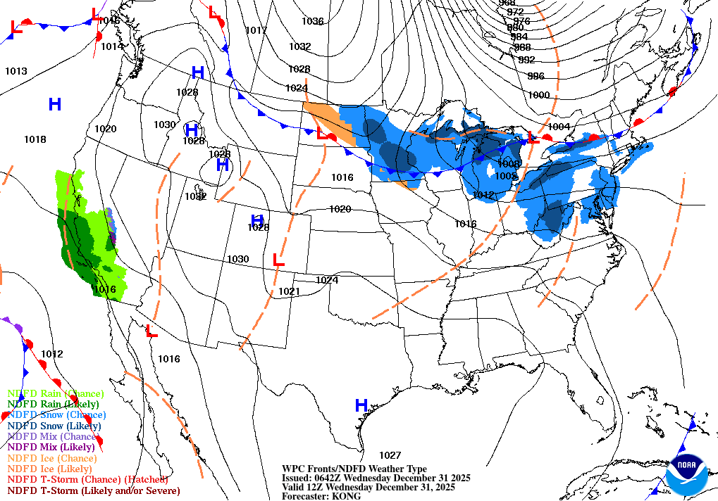 Mostly clear. Low around 32, with temperatures rising to around 35 overnight. West wind around 0 mph.
