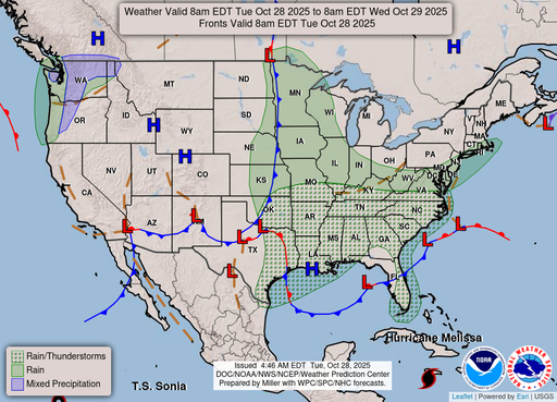 Clear, with a low around 43. North wind 10 to 20 mph, with gusts as high as 30 mph.