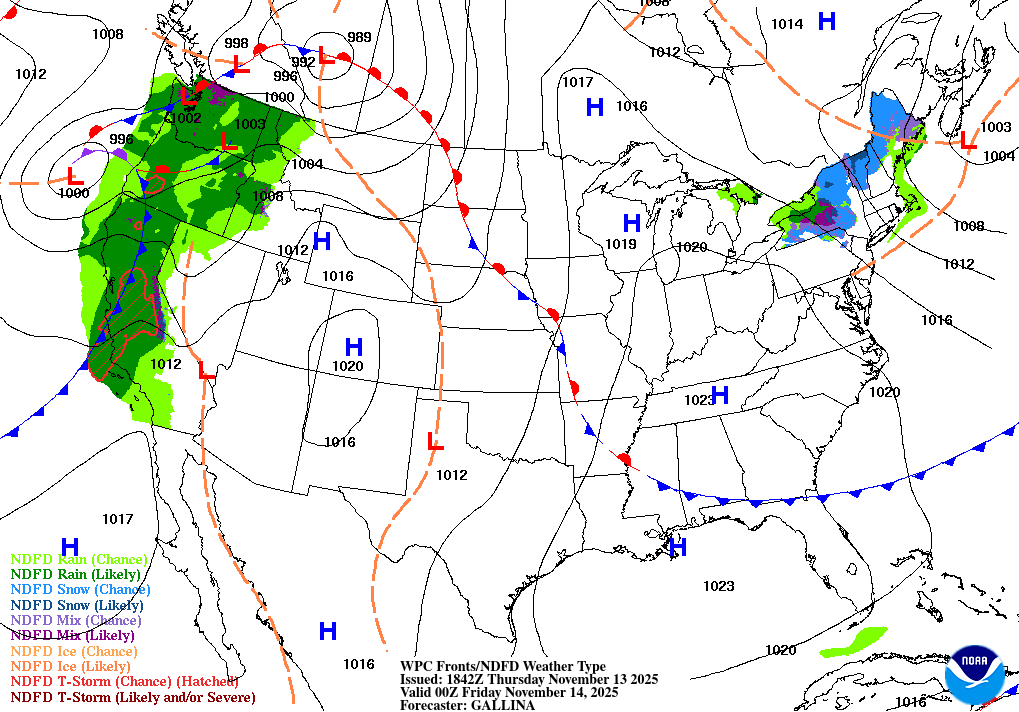 A chance of showers and thunderstorms before midnight, then a chance of showers and thunderstorms. Mostly cloudy, with a low around 61. Chance of precipitation is 40%.