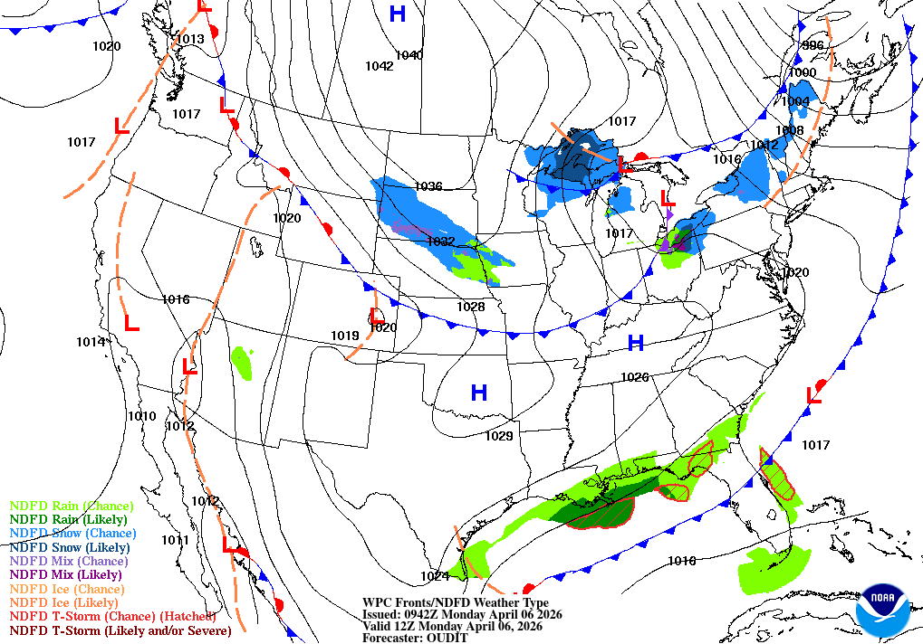 NW wind 15 to 25 kt, becoming W 10 to 20 kt in the afternoon Seas 5 to 7 ft, subsiding to 3 to 5 ft Wave Detail: NW 6 ft at 7 seconds and S 2 ft at 12 seconds