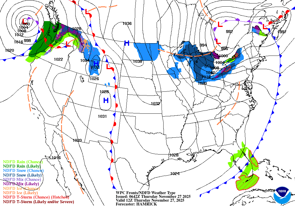 NW wind 15 to 25 kt Seas 8 to 11 ft, subsiding to 7 to 9 ft Wave Detail: NW 3 ft at 6 seconds, NW 9 ft at 14 seconds and S 2 ft at 15 seconds Patchy fog in the morning