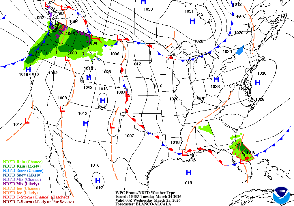 NW wind 15 to 25 kt, becoming N 10 to 20 kt after midnight Seas 7 to 10 ft Wave Detail: NW 8 ft at 11 seconds and N 3 ft at 11 seconds Patchy fog after midnight
