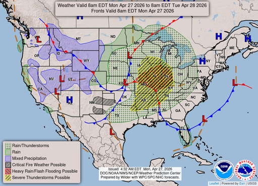 NW wind 10 to 20 kt with local gusts to 25 kt Seas 4 to 5 ft Wave Detail: NW 2 ft at 5 seconds, NW 4 ft at 8 seconds and S 2 ft at 14 seconds A slight chance of rain in the morning