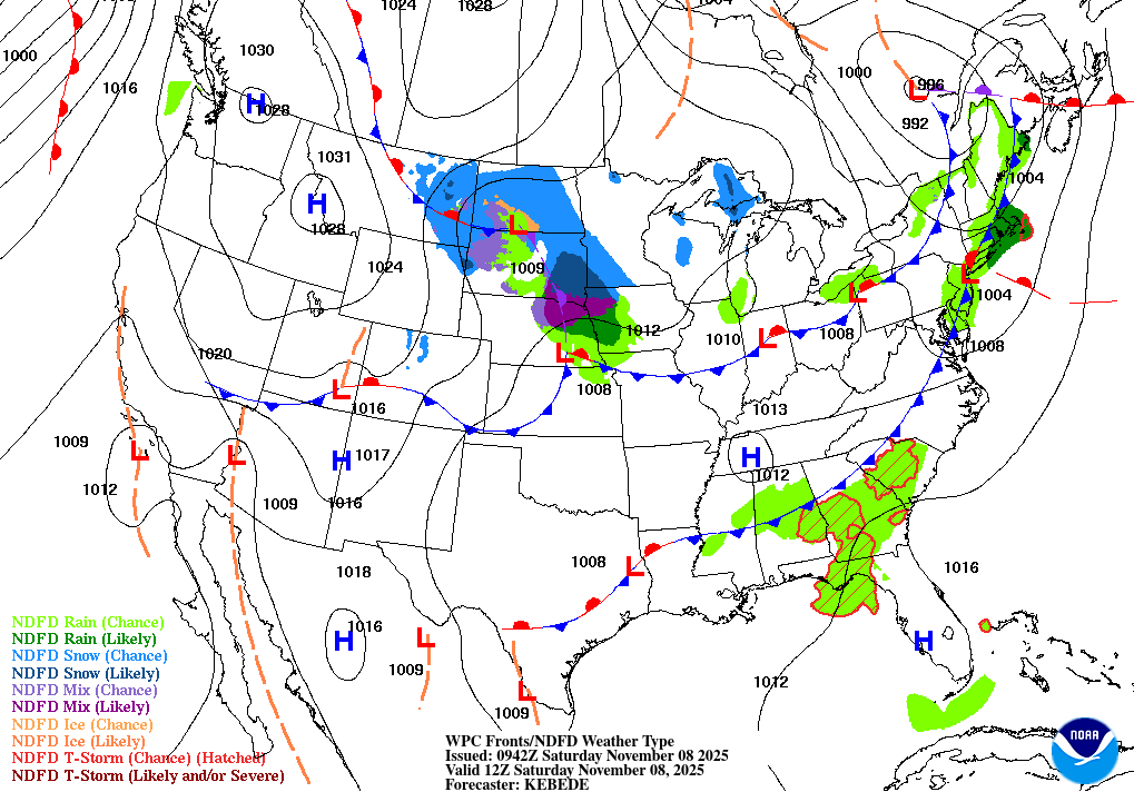A chance of rain showers before 1pm, then a chance of showers and thunderstorms. Partly sunny, with a high near 73. South wind 7 to 13 mph. Chance of precipitation is 40%. New rainfall amounts less than a tenth of an inch possible.