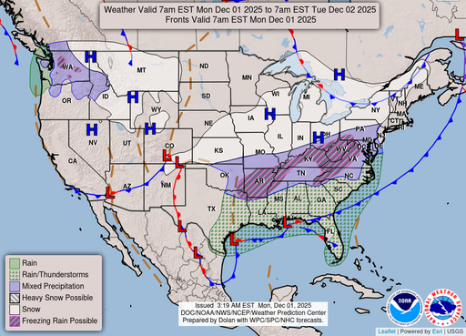 Rain likely after 3am. Mostly cloudy. Low around 39, with temperatures rising to around 46 overnight. East wind 3 to 7 mph. Chance of precipitation is 70%. New rainfall amounts less than a tenth of an inch possible.