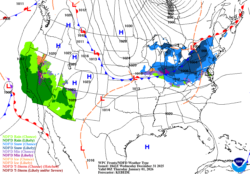 A chance of rain and snow before 1am. Mostly cloudy, with a low around 27. Chance of precipitation is 30%.