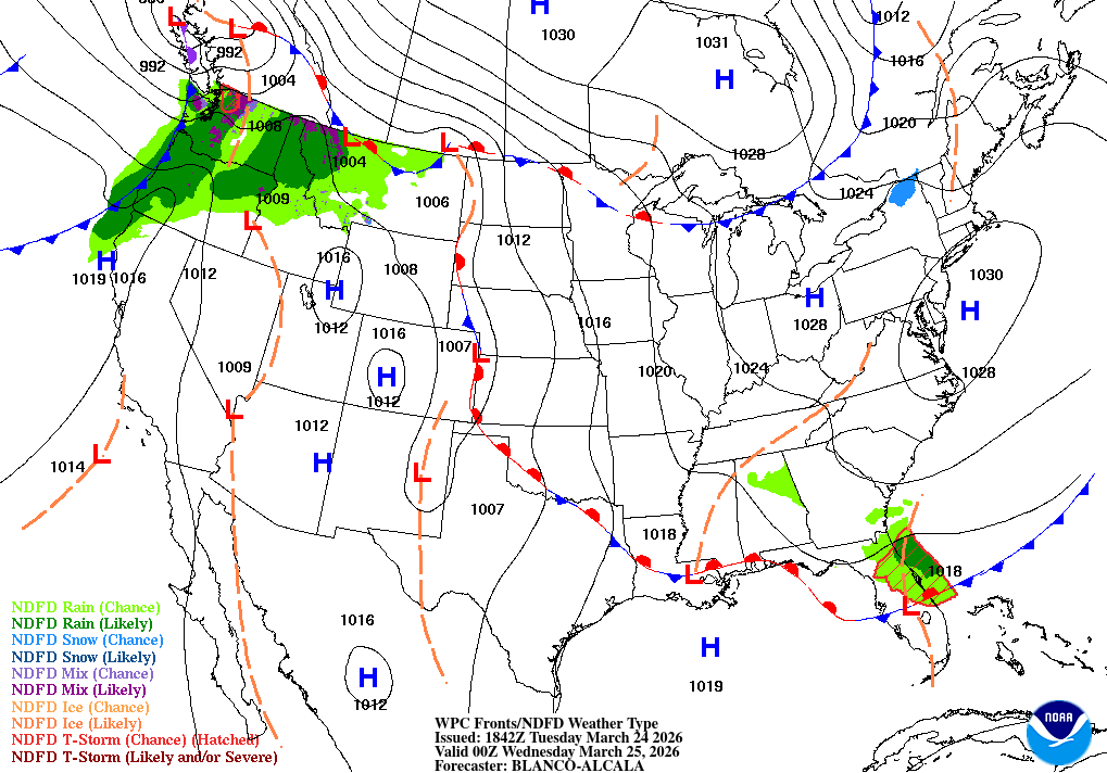 A chance of rain before 2am, then a slight chance of rain and snow. Mostly cloudy, with a low around 32. Chance of precipitation is 40%.