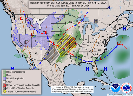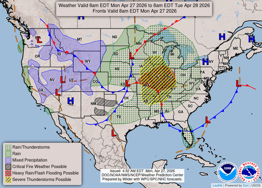 Chance Rain ShowersWinds: 15 mph E