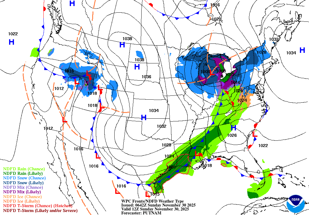 Rain before 1am. Mostly cloudy, with a low around 30. Chance of precipitation is 90%.