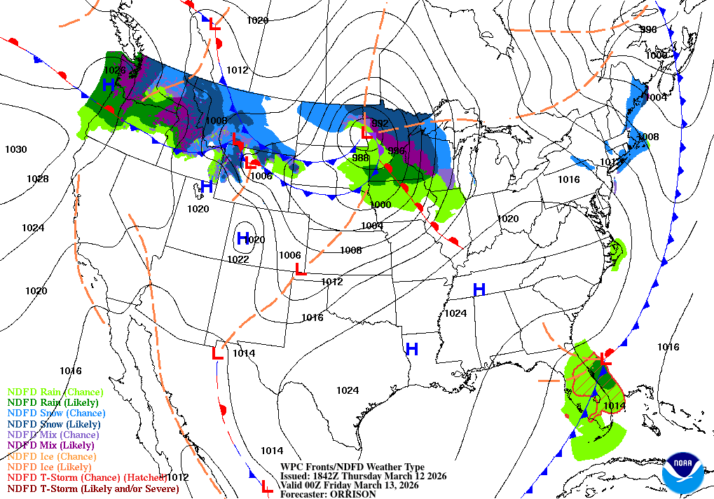 NW wind 5 to 10 kt Seas 7 ft Wave Detail: NW 7 ft at 11 seconds and S 2 ft at 18 seconds A chance of rain with areas of drizzle
