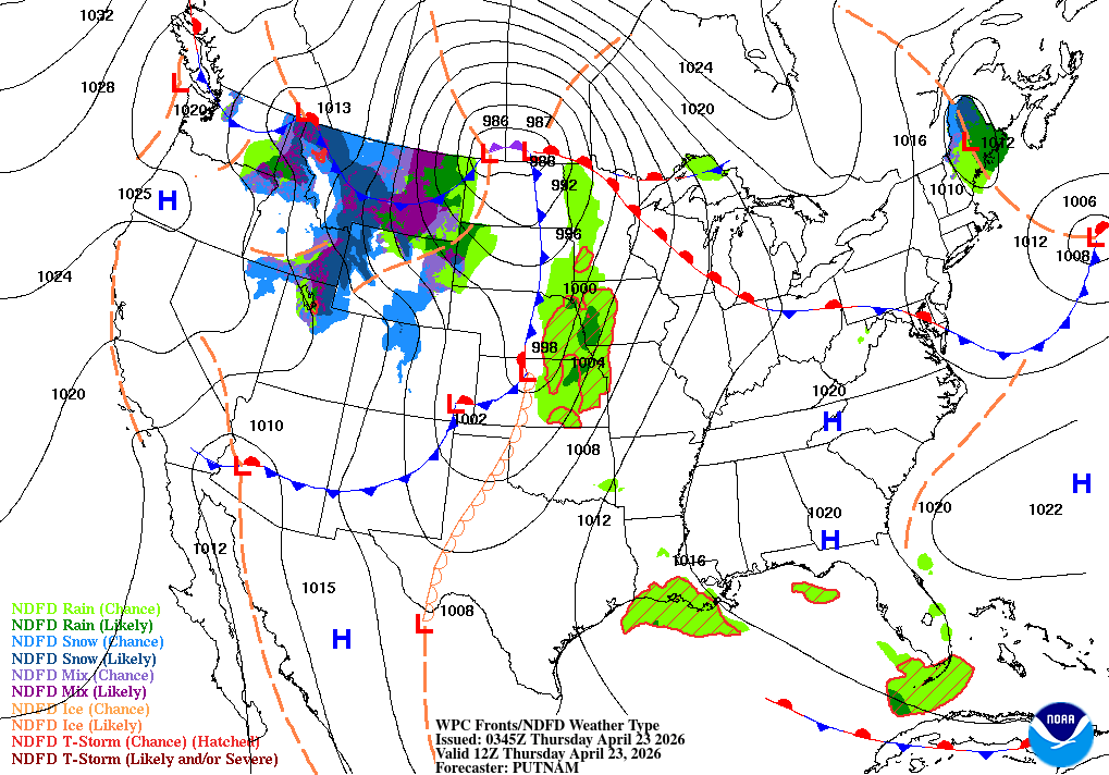 NW wind 5 to 10 kt Seas 5 ft Wave Detail: NW 5 ft at 12 seconds and S 1 foot at 13 seconds A chance of rain