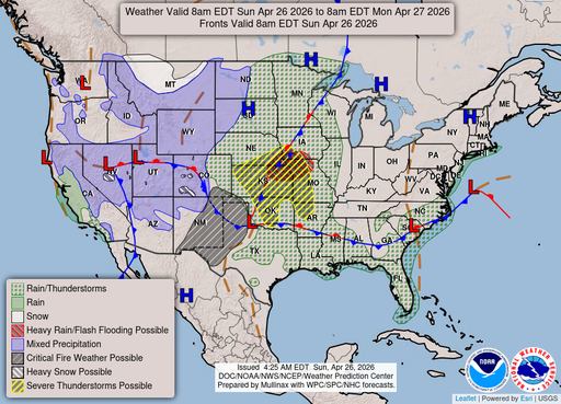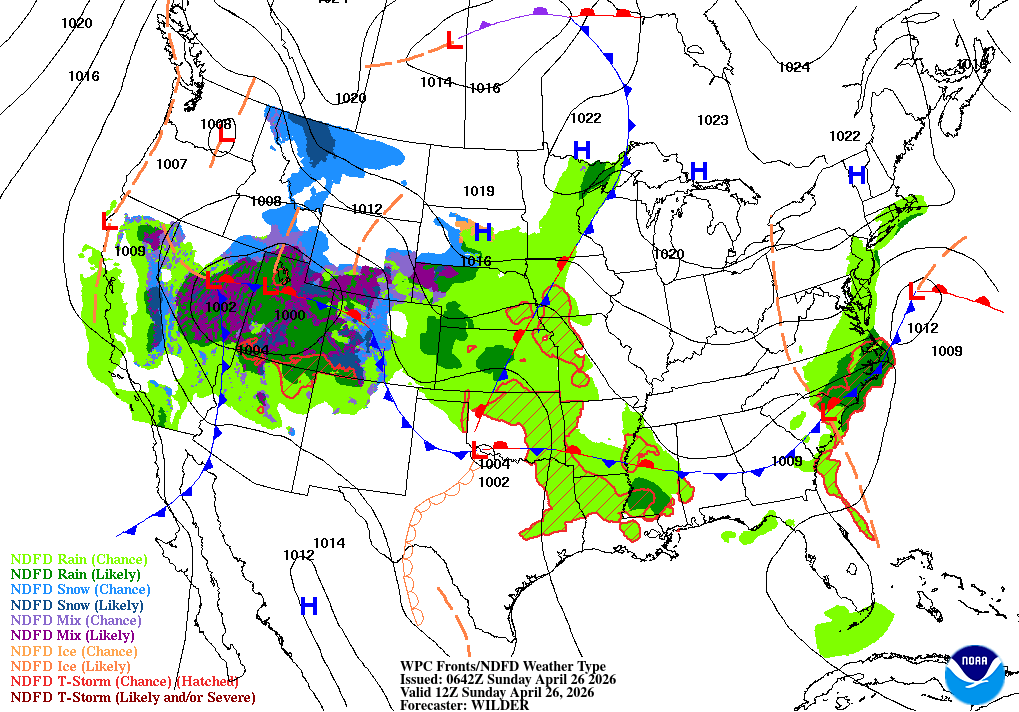 A chance of rain between 3pm and 5pm, then showers and thunderstorms likely. Mostly sunny, with a high near 66. South southwest wind 2 to 9 mph, with gusts as high as 18 mph. Chance of precipitation is 60%. New rainfall amounts between a tenth and quarter of an inch possible.