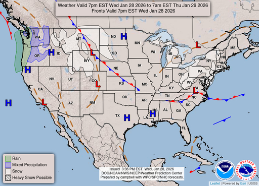 Mostly cloudy. Low around 42, with temperatures rising to around 44 overnight. North wind around 5 mph.