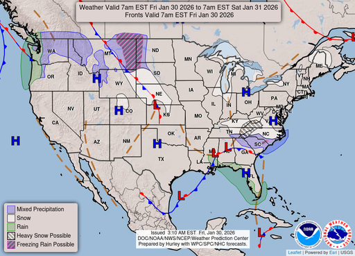 Partly cloudy. Low around 44, with temperatures rising to around 46 overnight. North wind around 5 mph.