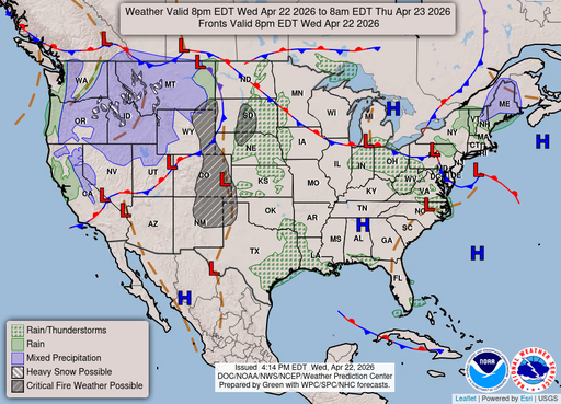 A chance of rain before 5am. Mostly cloudy, with a low around 47.