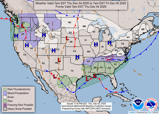 A chance of rain between midnight and 5am, then a chance of snow. Mostly cloudy, with a low around 27. Northwest wind 6 to 12 mph. Chance of precipitation is 30%.